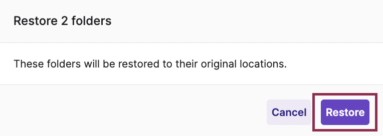Afterward, in the confirmation pop-up, click Restore to return the items to their original location.