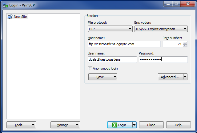 Password: Your Egnyte password.If your FTP Client does not support $ symbol then you can use any of the following symbols: % # | @ &
