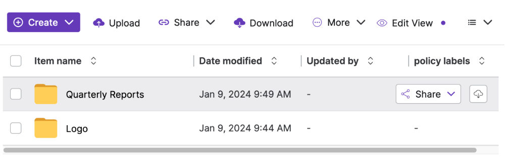 When a user hovers on a file or folder, the floating context menu for the actions they can take on that item has been moved to the right.