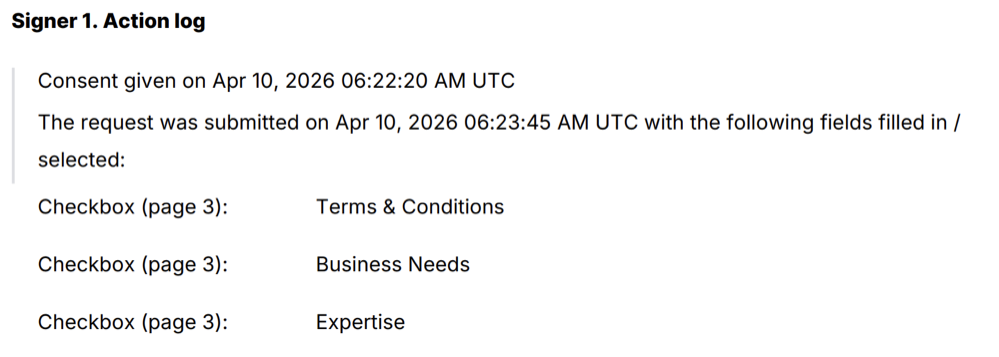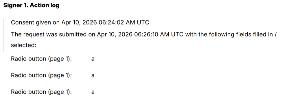 Similarly, the radio button selected by the signer for each of the group(s) is included in the certificate of completion.