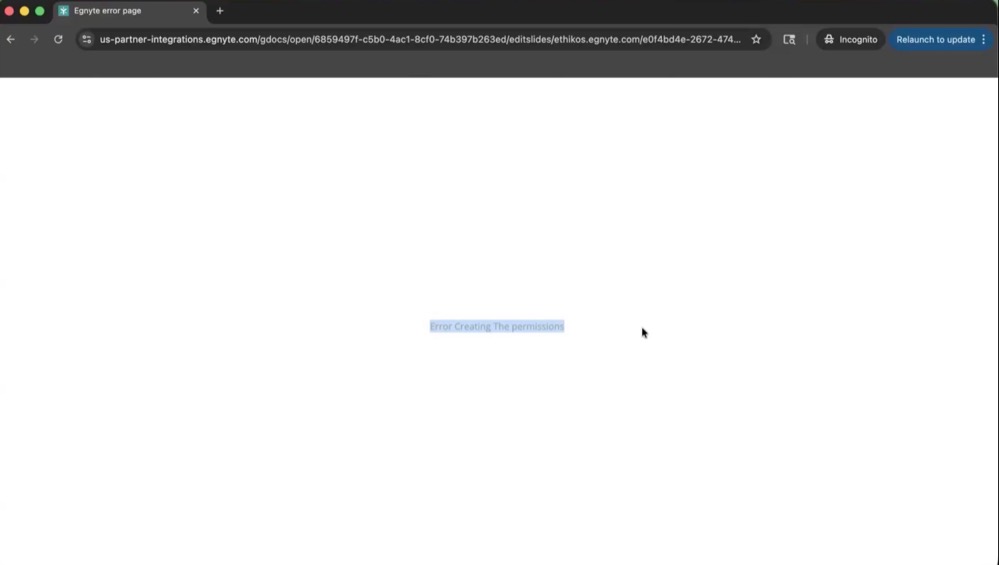This may lead to error in Google co-edit as well as display an Error creating permissions message. This is because the users opening the files are not yet members of the Google Shared Drive.