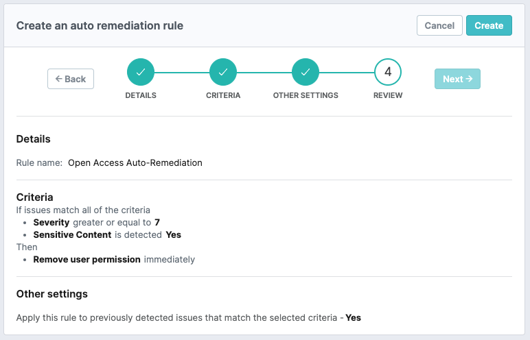 Review the Rule Configuration. Click Create