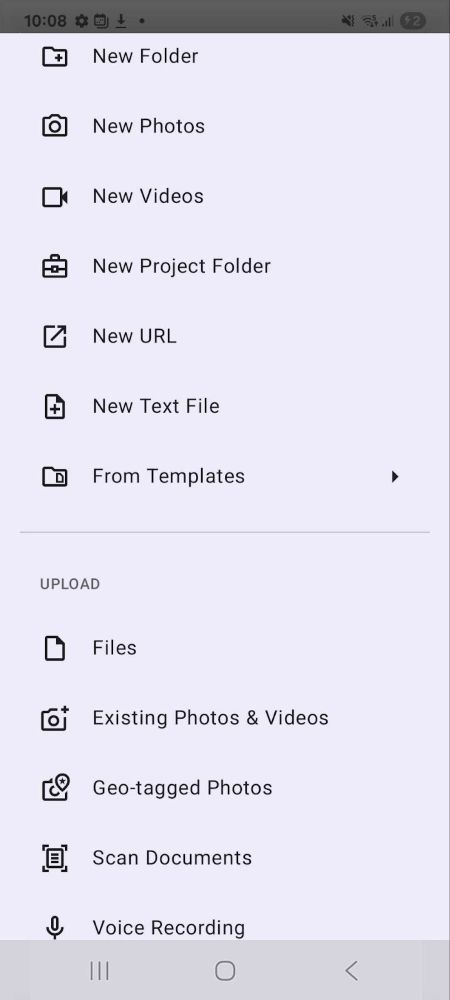 • Take photo or video – Captures a new photo or video using the device’s camera and uploads it directly to the selected folder.