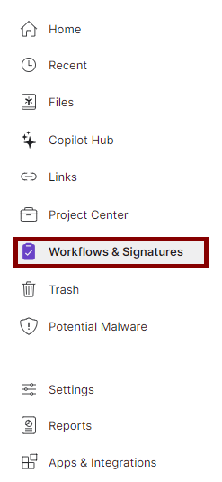 Users can access a list of all the tasks assigned to them or the workflows they have created by opening the Tasks and Workflows in the left navigation bar.
