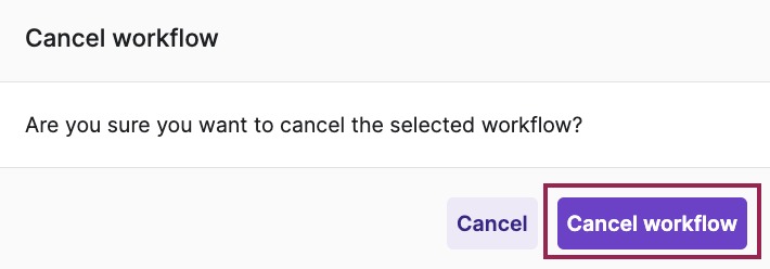 To cancel a workflow, click on Cancel workflow in the confirmation pop-up.