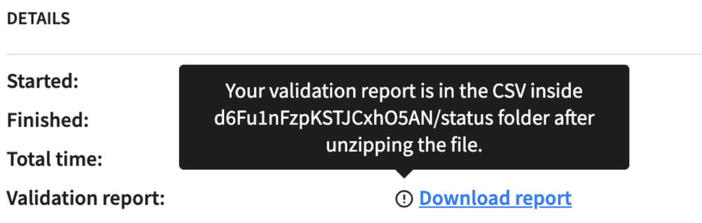 A tooltip has been added to the download link for validation reports to inform users that the report will be available within a zipped folder.