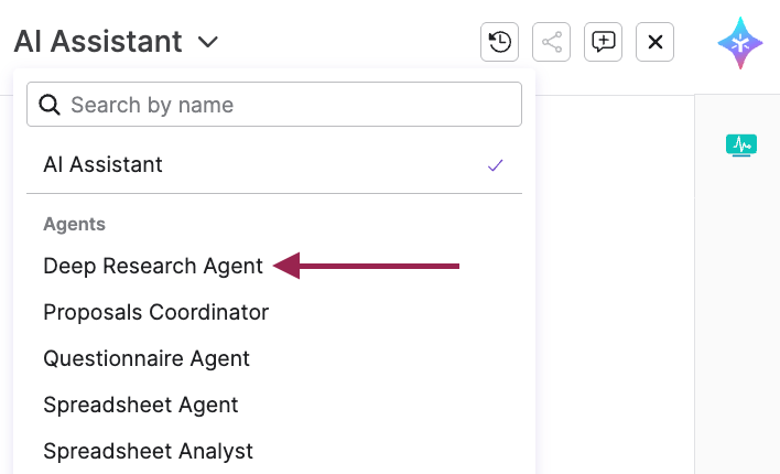 Users can access the agent from the contextual entry point or from the AI -> Agents -> Deep Research Agent.