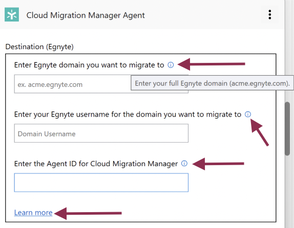 Tooltips and Learn More Options for Configuring the Agent