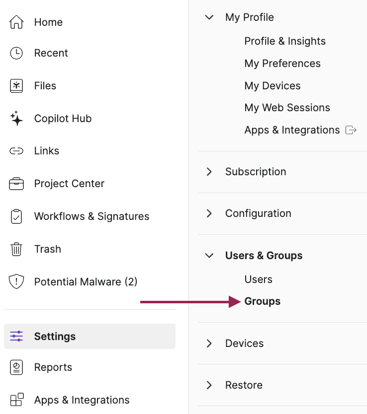- Create a new user group in the web UI. Go to the left side menu > Settings > Users & Groups > Groups > Add Group