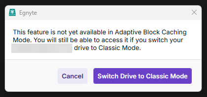 Users can either choose Cancel or Switch Drive to Classic Mode.