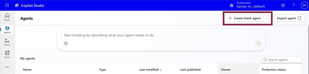 - Navigate to Agents -> Create Blank Agent