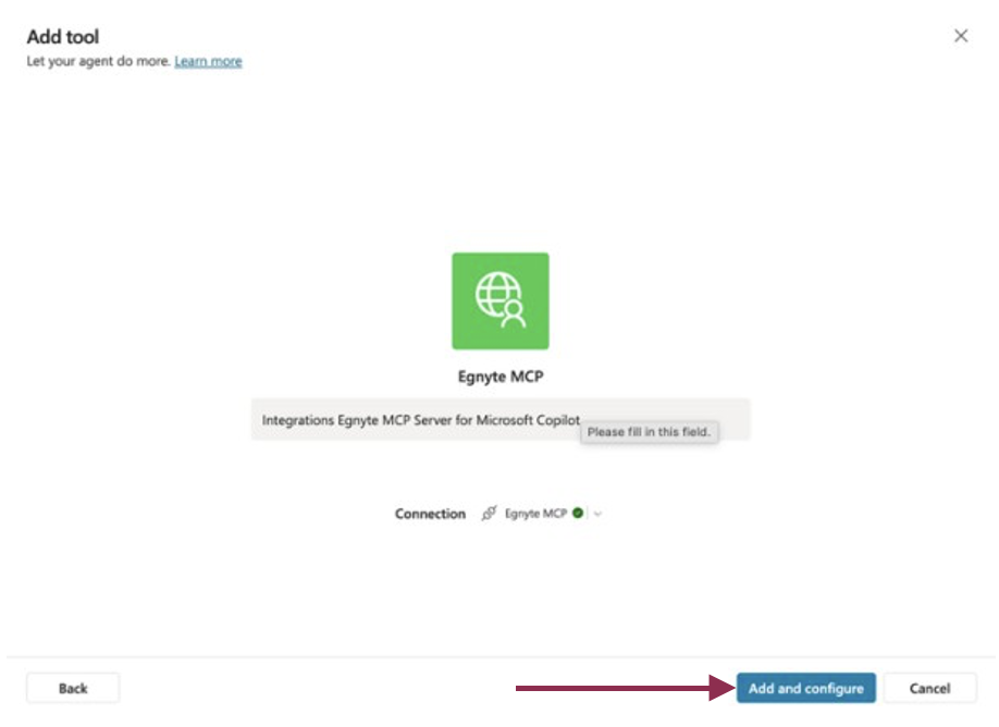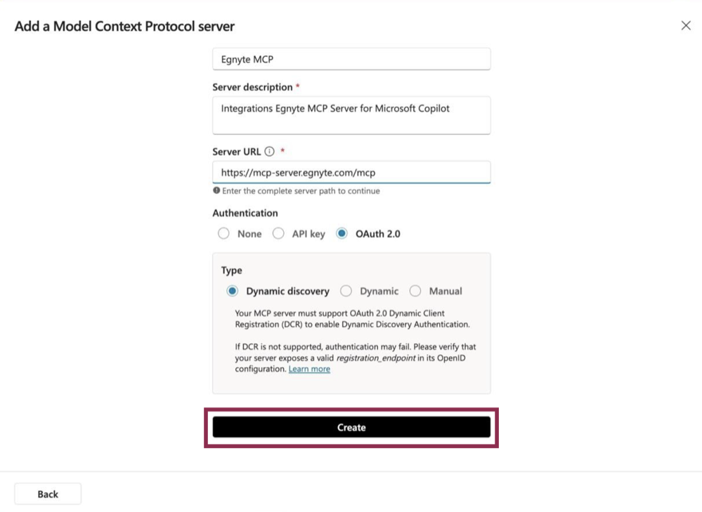 - Server description: for example; [Domain name] Egnyte MCP Server for Microsoft Copilot