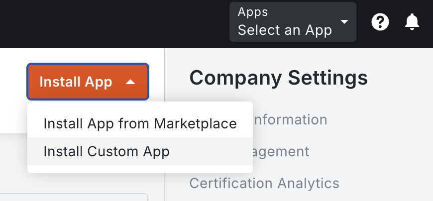 Click on Install App -> Install Custom App option in the top-right corner of the App Management page.