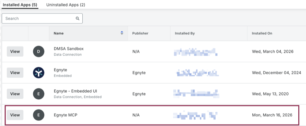Egnyte MCP app will appear in the Installed Apps list.