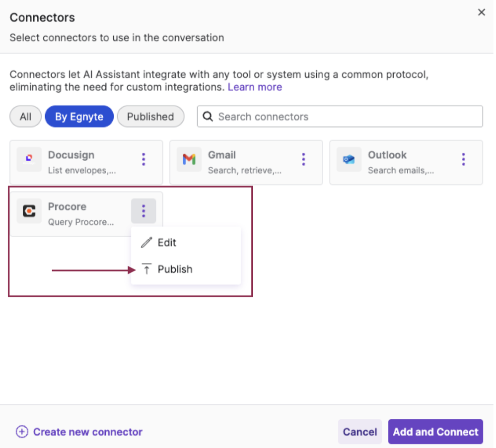Egnyte offers its users the ability to connect to external AI connectors in order to bridge the gap between Egnyte and widely used productivity tools.