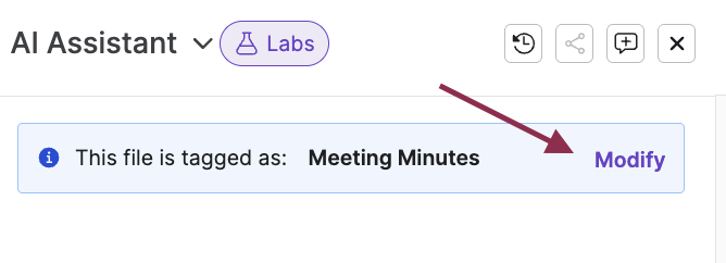 Users can hover over the file and click on the Edit icon to change the document type.From the AI Assistant tab in file preview.
