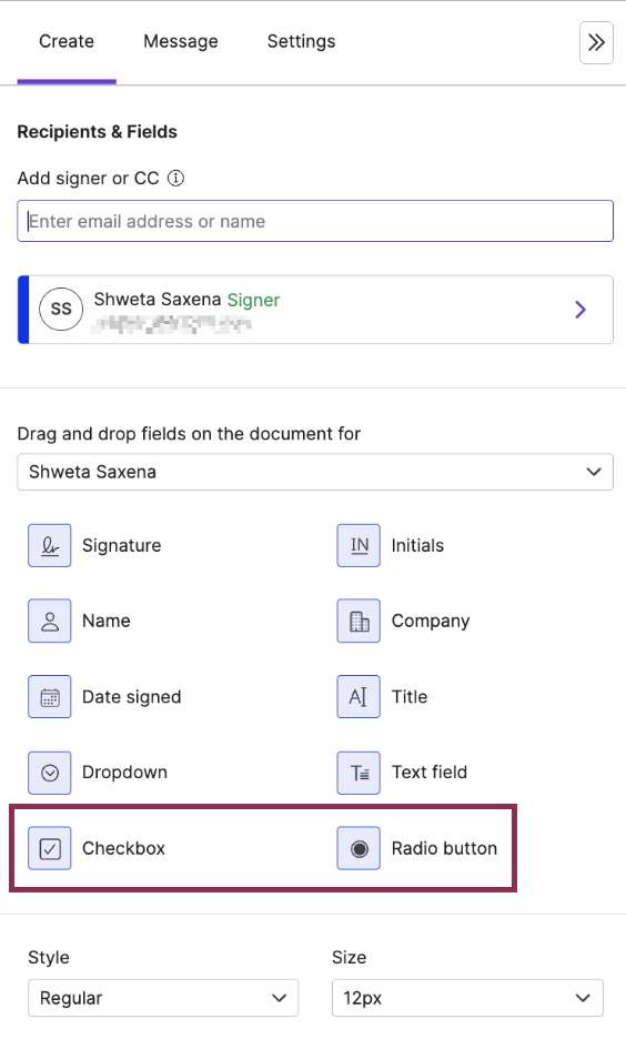 Requestors can now add checkboxes and radio buttons as fields in signature requests, along with custom labels for each option.
