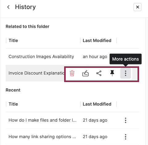 Egnyte has made it easier to navigate and manage past AI conversations across its AI tools. Conversations now have auto-generated, meaningful titles, enabling users to quickly locate them. In Egnyte’s AI Assistant, all previous conversations related to the file or folder in scope are surfaced at the top for easy access.